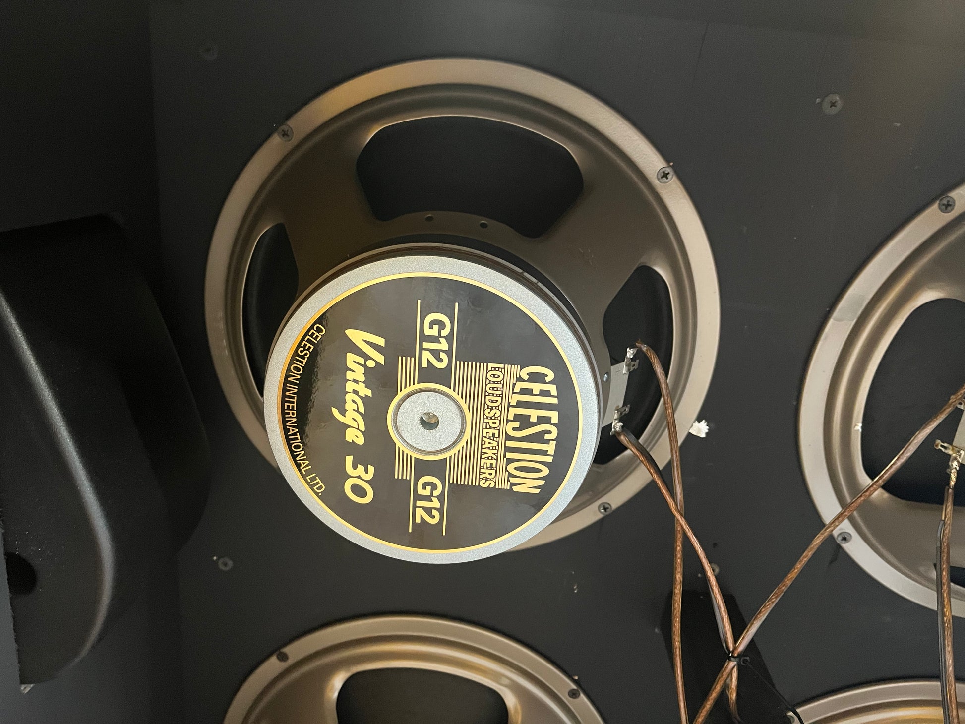 Diezel Rearloaded Vintage 240W 4x12 Speaker Cabinet with V30s. Solid choice for some serious chug. We've put some castors on to make it easier to move it about. Over a grand new, this one is available for £412 (geddit?).