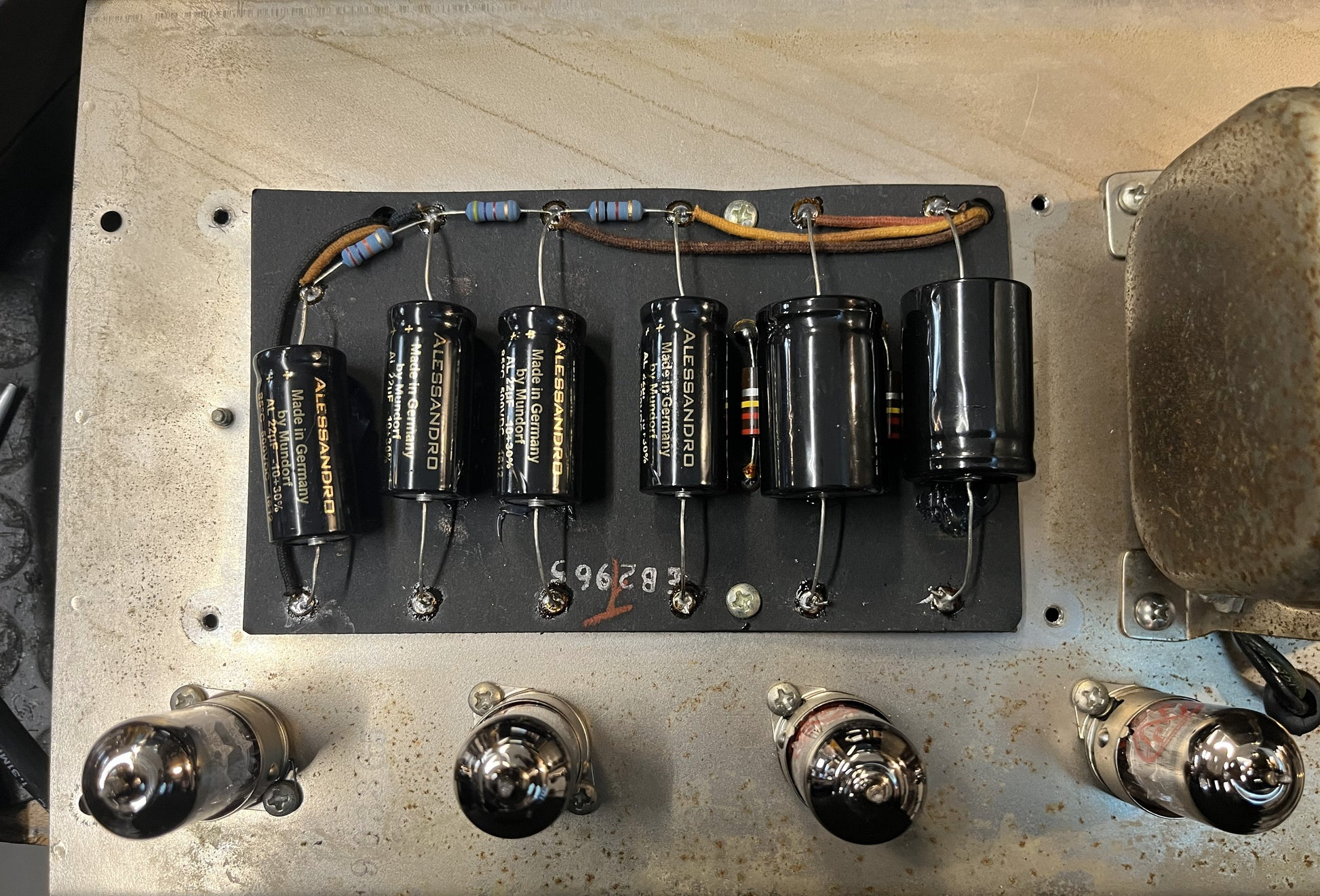 This head has the legendary blackface AB165 circuit with it's firm solid state rectifier, classic preamp circuit and beefy output transformer. We changed the main transformer for a UK voltage hammond, so you don't need a stepdown to . Filter, bypass & bias caps have been changed, as you would expect, all the coupling & tone caps are original, including the Blue Molded Ajax caps that sound great and last forever.