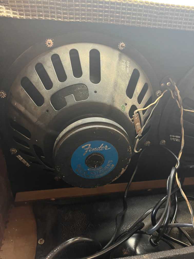Absolutely stunning Blackface Pro Reverb! Historically underappreciated and misunderstood, Pro Reverbs are far more like a Vibrolux with two 12" speakers thans a Twin with two less power valves. This one is so clean and original it's just ridiculous. Nice pair of original 12" Oxford 12L5s to boot. Serviced, re-capped & where necessary and re-biased, this amp is ready to run forever. Original footswitch included. We have dropped in a UK volvtage mains transformer so you dont have to lug a stepdown transformer around as well.