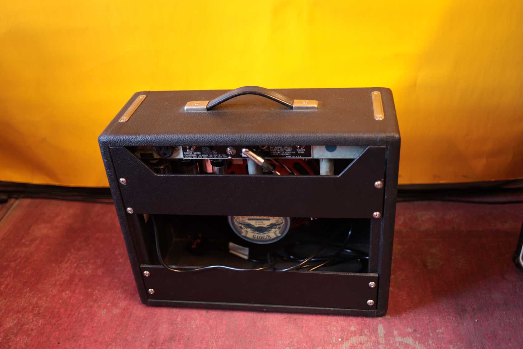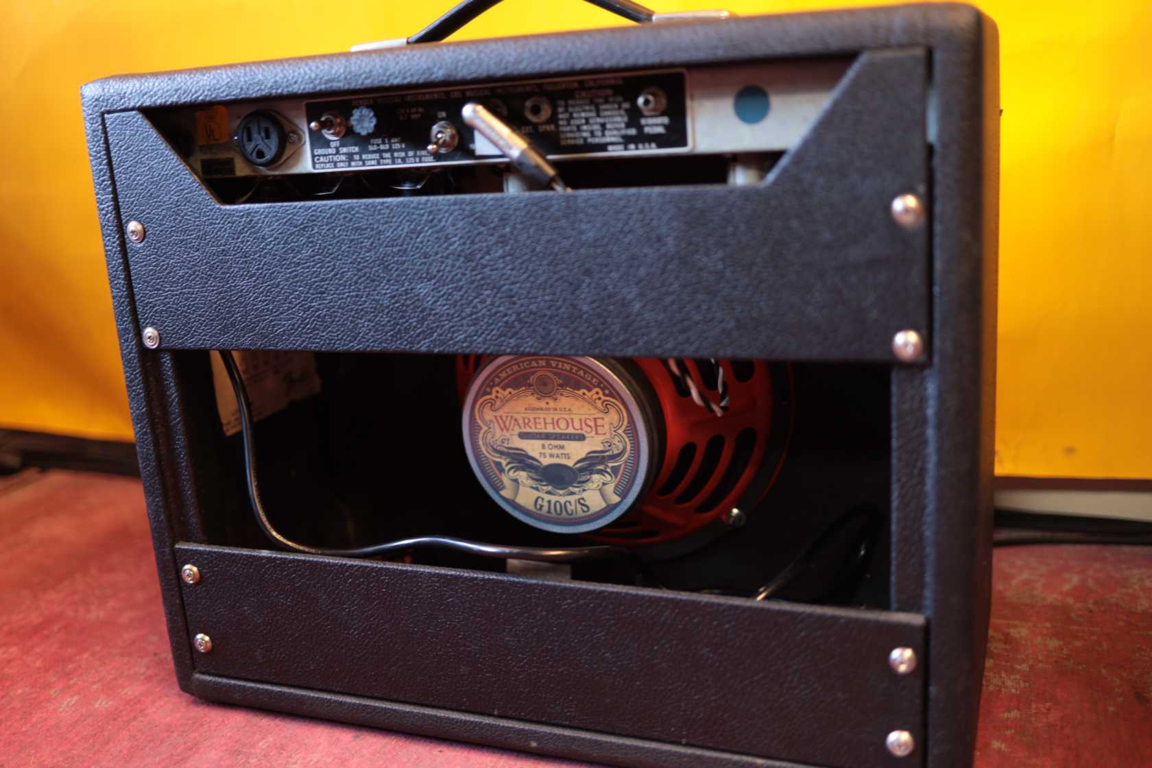 Great, clean sounding Silverface Princeton from 1970. When we got this it had a ratty ceramic Jensen reissue speaker installed, so we swapped that out for a nice smooth cone Warehouse (G10C/S), which improved it no end. A good servicing also did it a lot of good and we installed a UK voltage transformer, biased it, and now it sounds just how a non-reverb Princeton should.