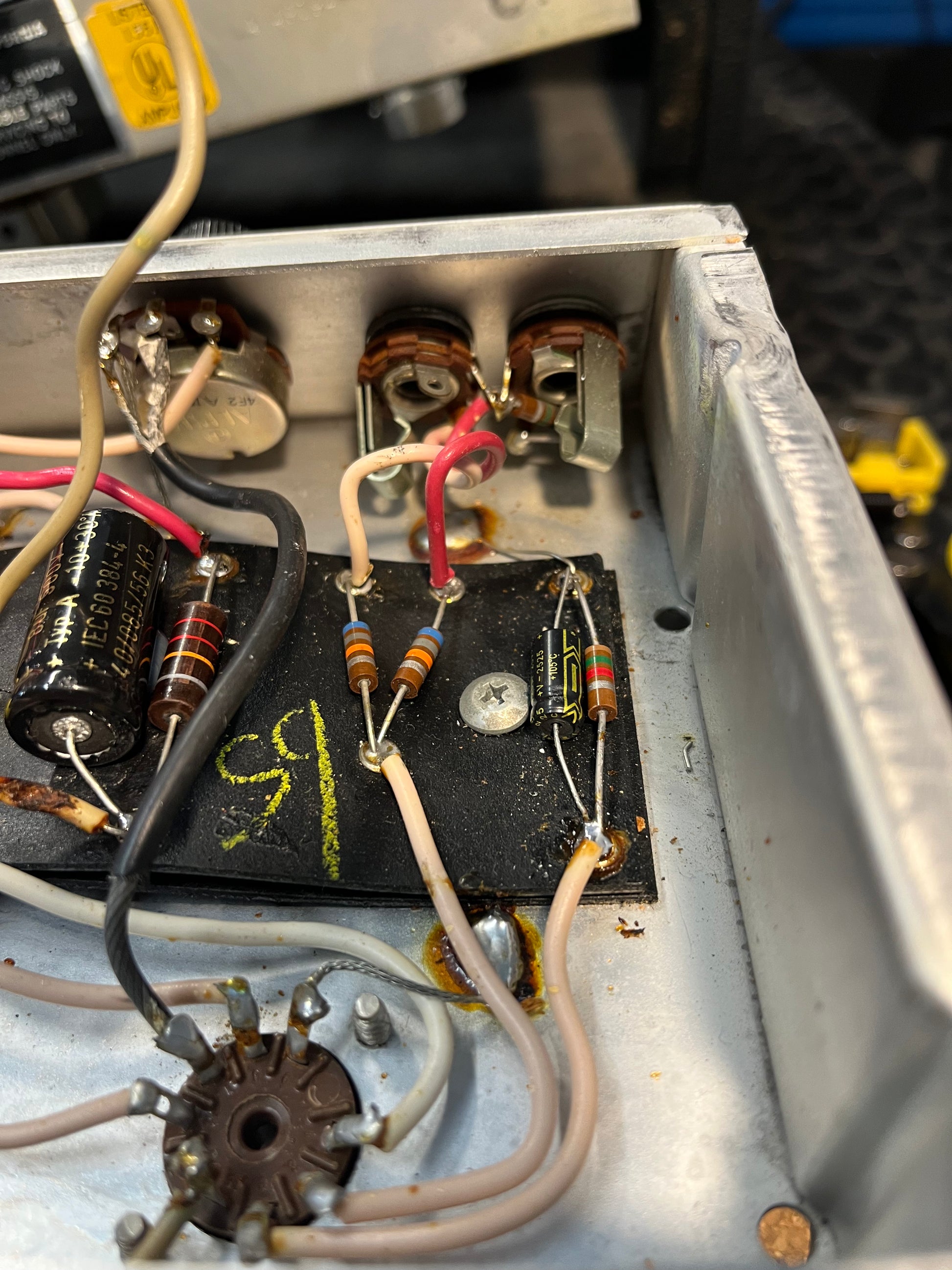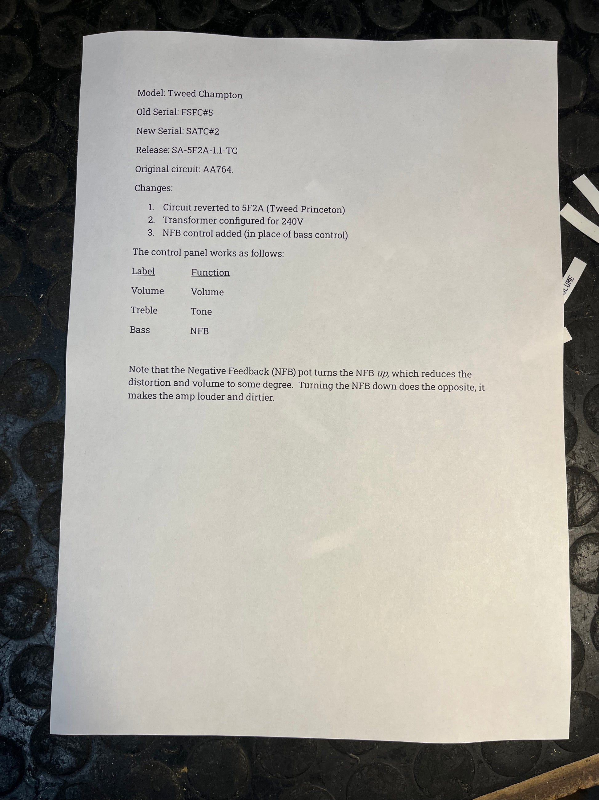 This is our 2nd Tweed Princeton circuit in a Silverface Champ body and it also sounds phenomenal! To be clear, it is actually the exact Tweed Princeton 5F2A circuit, not just similar, it is the same. The only significant addition we've made to the original circuit is to re-wire the, now redundant, bass pot as an NFB control. So you can decide how gritty you want it to be. The volume & tone control are as per the 5F2A Princeton circuit. You're getting a classic tweed circuit for a fraction of the price of a real one. Very cool sounding amp, and a lot louder than you would expect! Runs on UK voltage.
