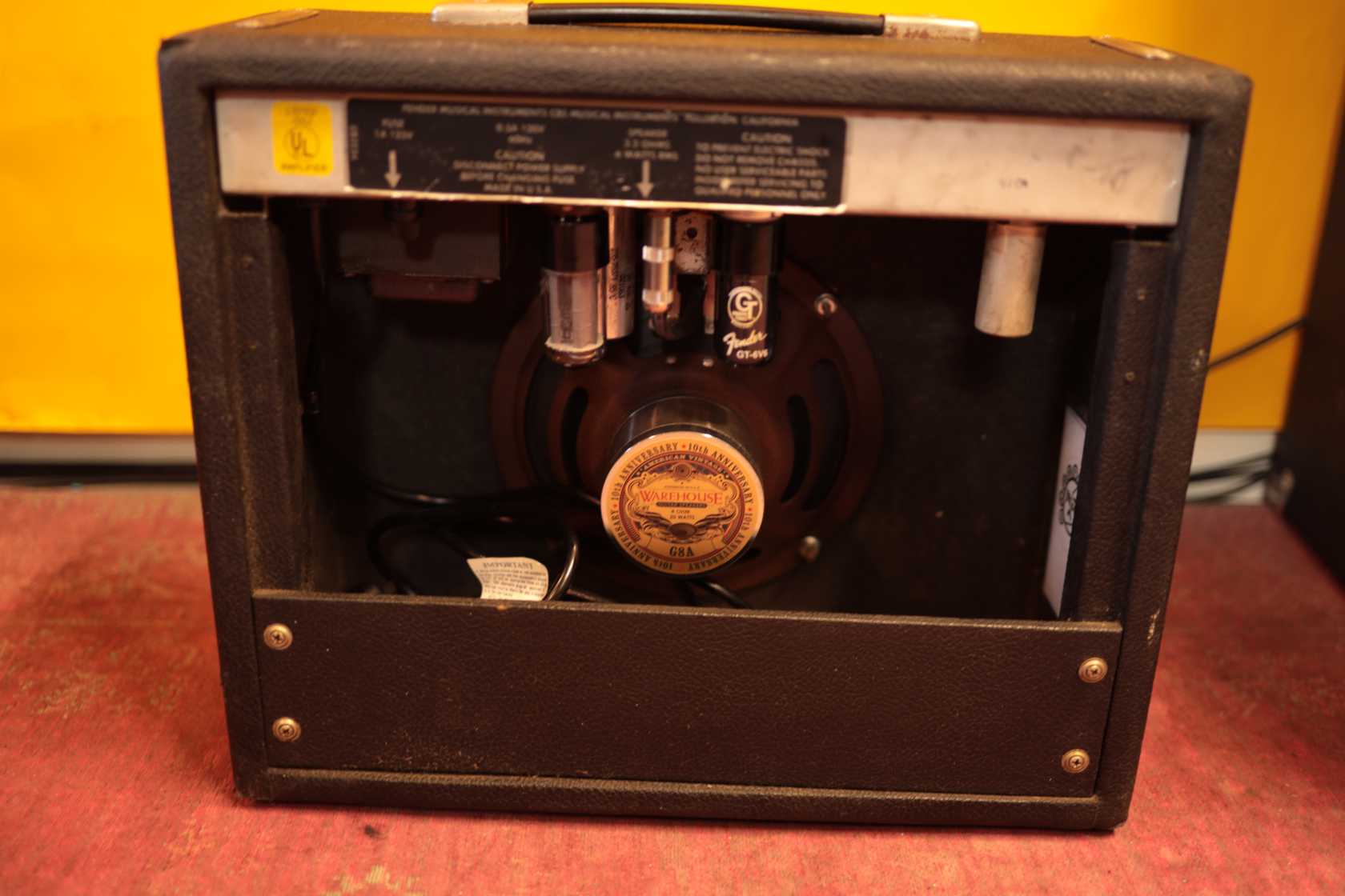 Here's another of our custom Champton line. This has been customised back to the exact Tweed Princeton 5F2A circuit, not just similar, it is the same. The only significant addition we've made to the original circuit is to re-wire the, now redundant, bass pot as an NFB control. So you can decide how gritty you want it to be. The volume & tone control are as per the 5F2A Princeton circuit. The other significant change is that we've swapped in a beefy 20W Warehouse Alnico speaker so you get more volume and more bass. You're getting a classic tweed circuit for a fraction of the price of a real one. This amp is a little beast! Someone's changed the speaker lead to a regular quarter inch jack and lost the top back panel. Who cares. Runs on UK voltage.