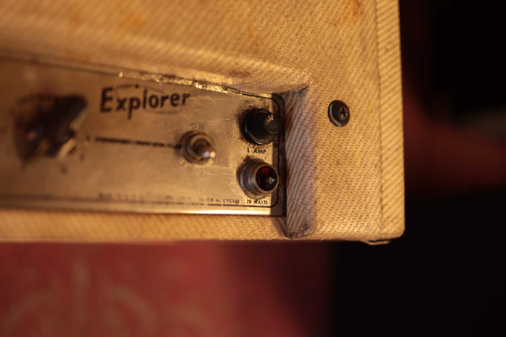 Another great Explorer from 1959 in great condition. We have installed a top of the range Warehouse Alnico W10A speaker in this to give it the best sound imaginable, solid, think lows, rasping mids and soaring highs, a glorious hard-to-beat sound!Aside from the new speaker we also had to fit a replacement footswitch as the original was missing. The control panel is mostly readable, with some light pitting and a few marks, which is pretty good for one of these. A few passive components have been changed, as you would expect. Sounds incredible! Needs a step down transformer to run on UK voltages.
