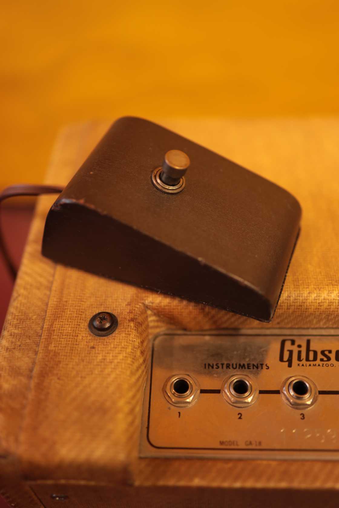 A 1959 in stunning condtion - original Gibson handle, Gibson logo (I think!), Jensen P10R speaker, mahogany footswitch, knobs, grille cloth, everything! Even the control panel, normally pitted and illegible, is entirely readable and in near perfect condition. A few passive components have been change, as you would expect. Sounds incredible! Needs a step down transformer to run on UK voltages.