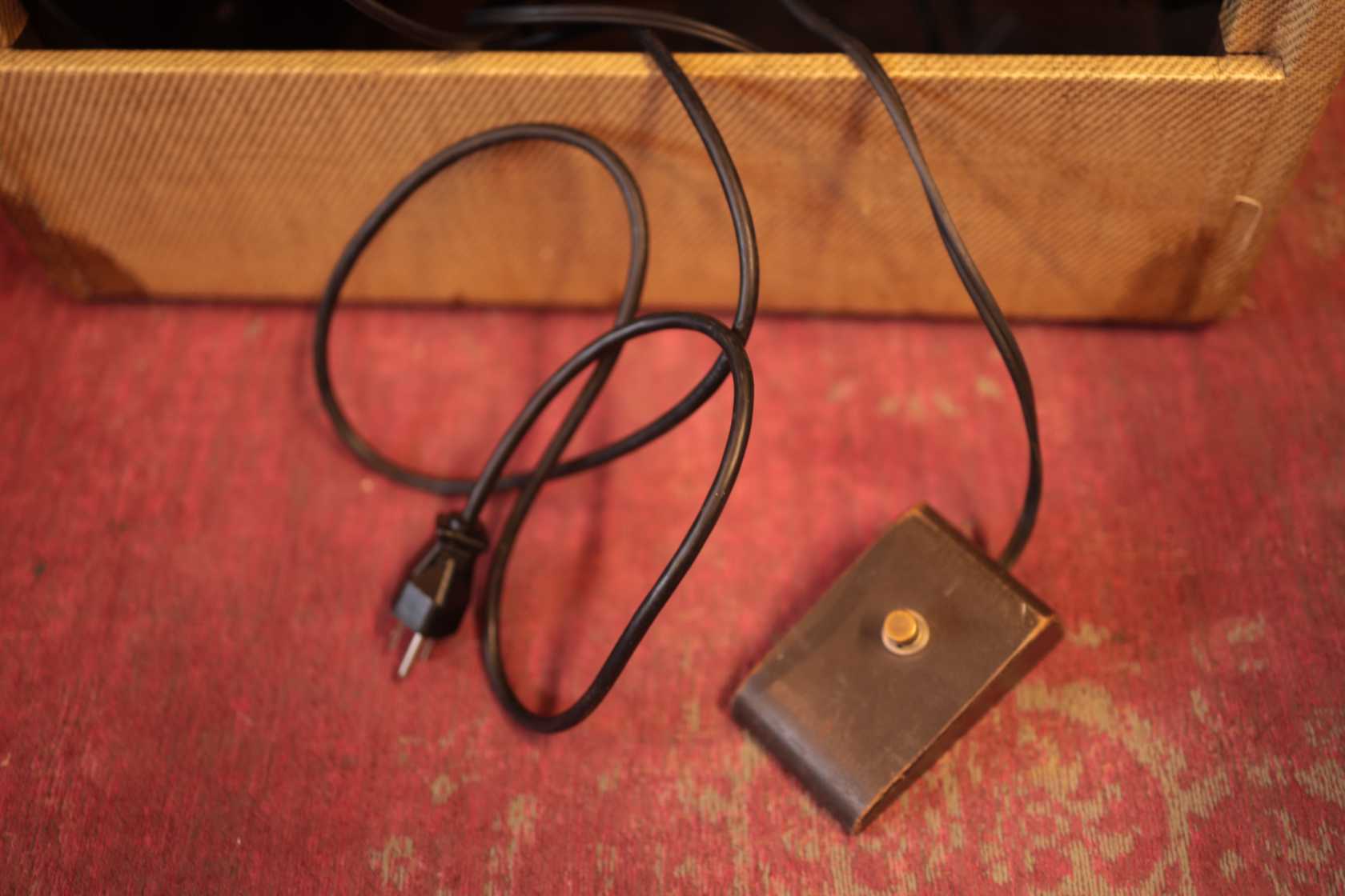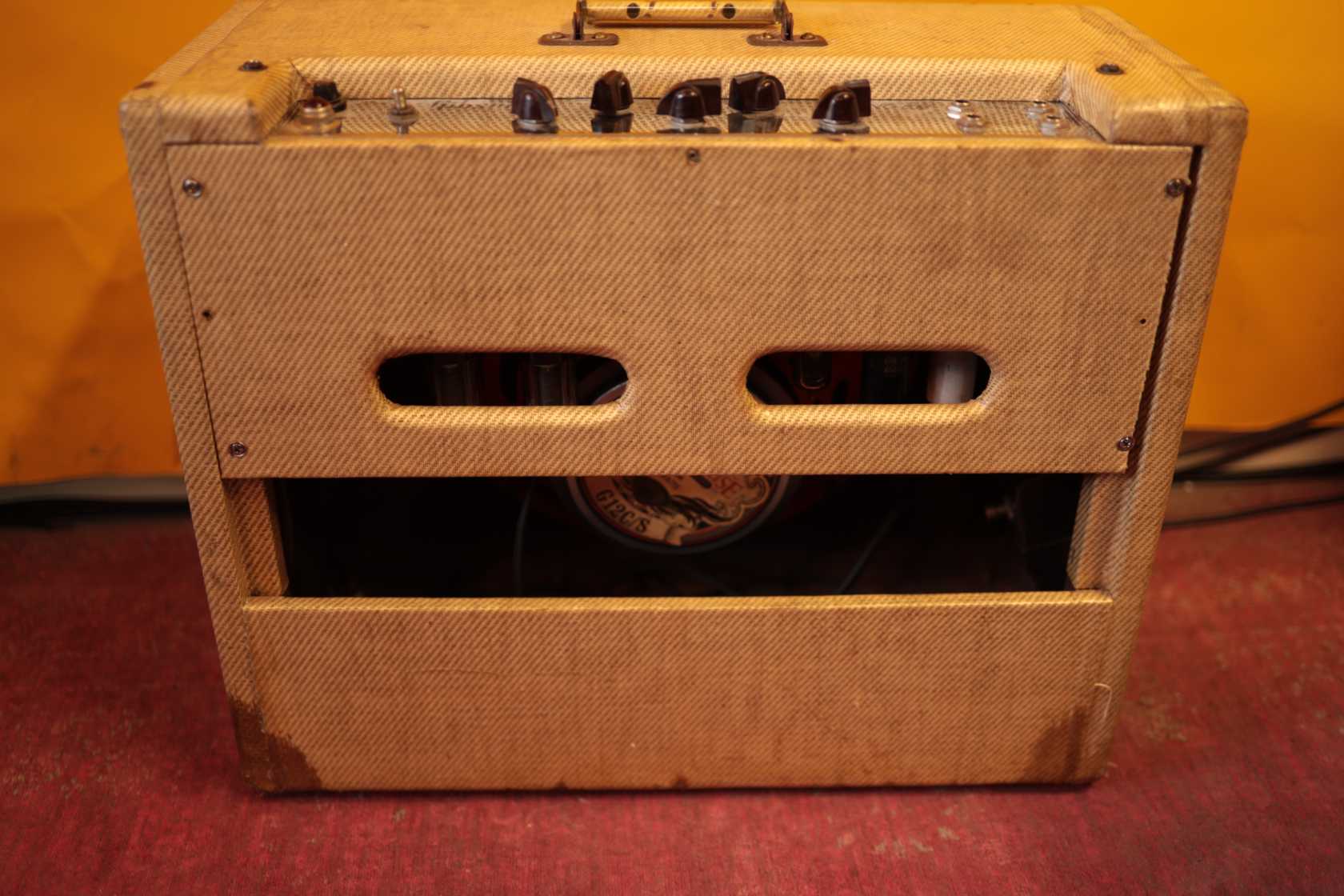 Tweed GA-20s are rare in the UK. This amp is like a souped up, two channel version of the Explorer. Same tonal foundation but so much more going on. The two channels run on different tubes and have quite distinct sounds which make this a great amp to play. Stable but versatile. Both inputs on Channel 1 get a triode each, whereas the inputs on on Channel 2 share a high gain pre-amp pentode. This gives the 2nd channel a very distinctive tone, quite unlike the now ubiquitous 12AX7. Two 6V6 power tubes in push-pull give this amp plenty of warm fuzzy power. Both channels are so great that it's impossible to decide which one to plug into. An AB pedal is arguably all you need to get every sound you need when you gig this.