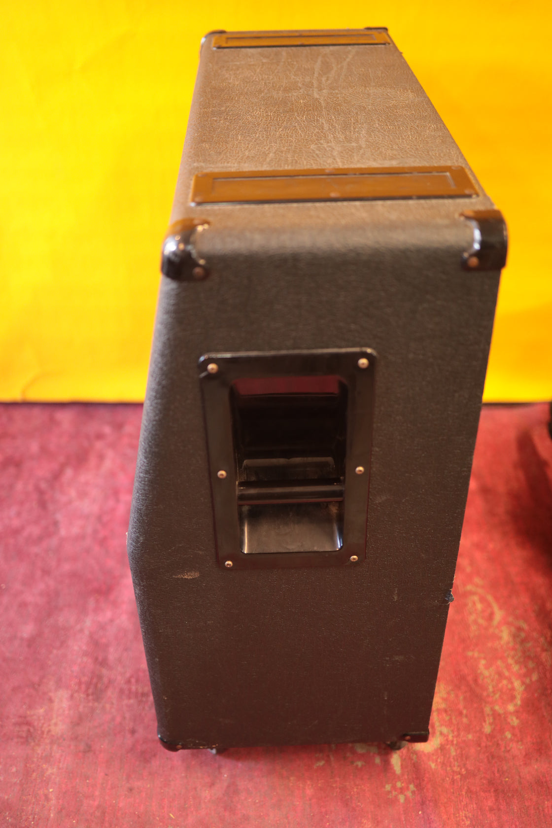 Classic mid-80s Marshall 4x12 16ohm slanted cab. However, this cab is loaded with Celestion Vintage speakers, the same ones that were used for the original jubilee. Note these are not the same as Vintage 30s, Rated at 65W, they were custom made for Marshall and I believe they pre-date the V30s.