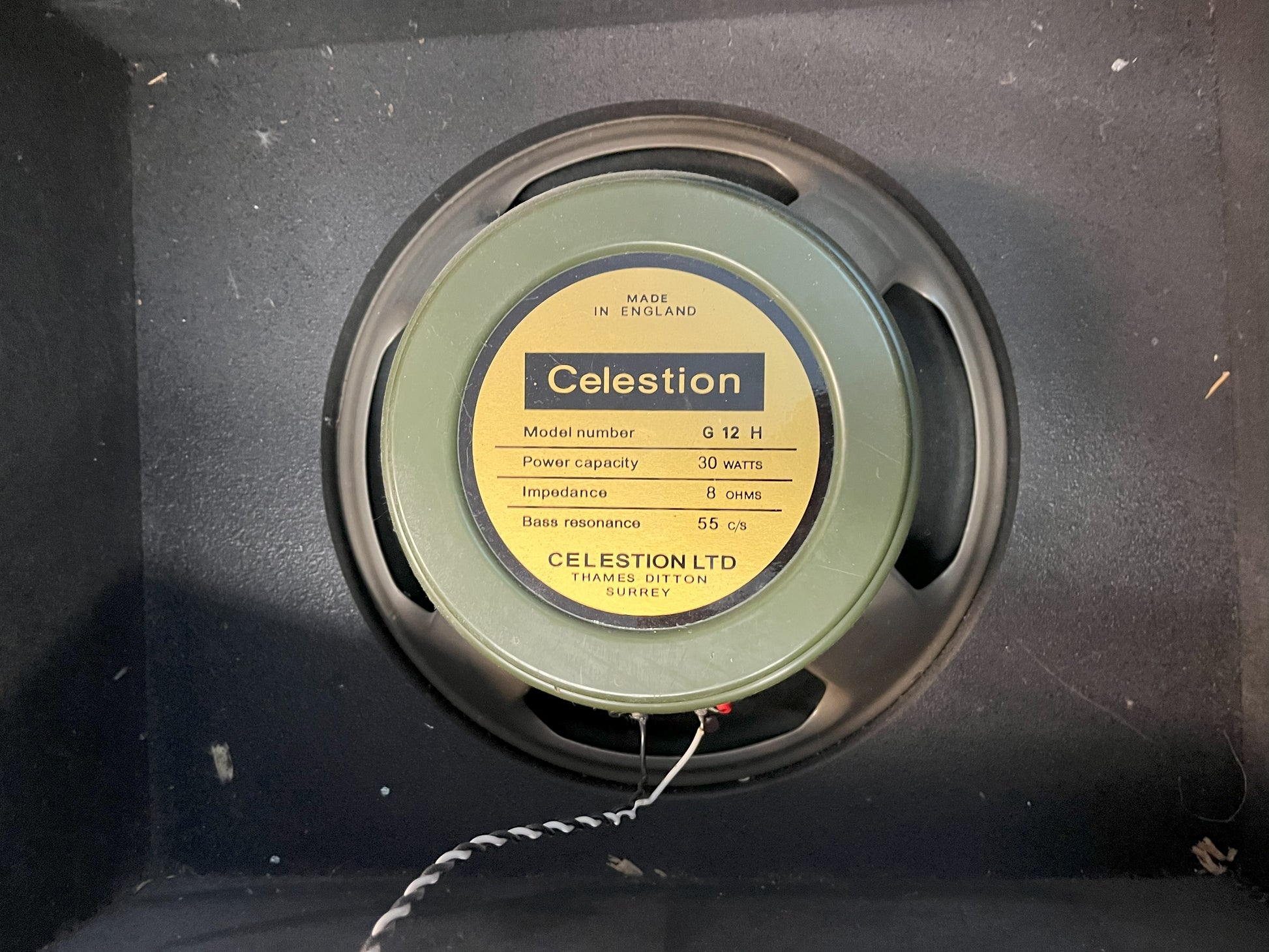 Nice 12" Mesa cab containing an 8ohm Greenback. Handy size and weight for giving lil' old Champ a bit more wellie! Serial is C4-06938.