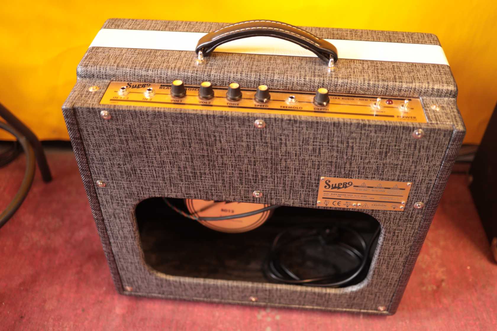 Less than half the price of a new one, this is a good price for this Supro Black Magick for those Led Zep tones! Just serviced with new power tubes, this amp is hardly used an in mint condition. Comes with factory issue cover. Serial #00386. No footswitch.